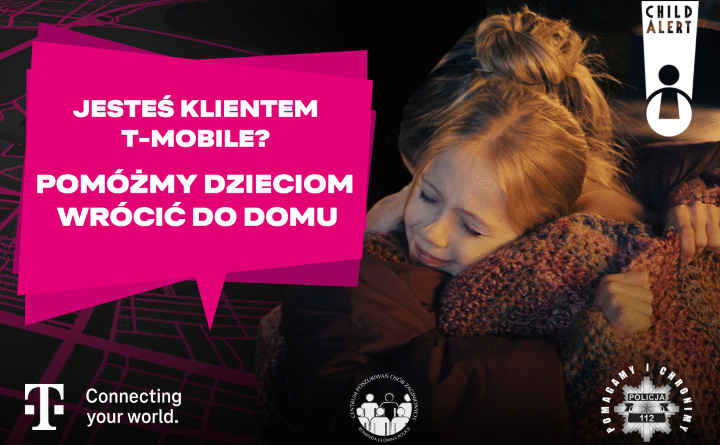 Każdego roku polska Policja rejestruje około dwóch tysięcy zgłoszeń dotyczących zaginięć osób małoletnich. Choć większość z nich kończy się szczęśliwie, zdarzają się sytuacje wyjątkowo trudne, wymagające zastosowania niestandardowych narzędzi. Jednym z nich jest system Child Alert – w listopadzie tego roku mija 12 lat od ogłoszenia gotowości operacyjnej tego systemu i 10 lat od pierwszej wysyłki komunikatu. T-Mobile Polska wraz z Komendą Główną Policji rozpoczynają kampanię informacyjną, której celem jest zwiększanie skali społecznej solidarności w poszukiwaniach zaginionych dzieci, które znajdują się w bezpośrednim zagrożeniu życia.