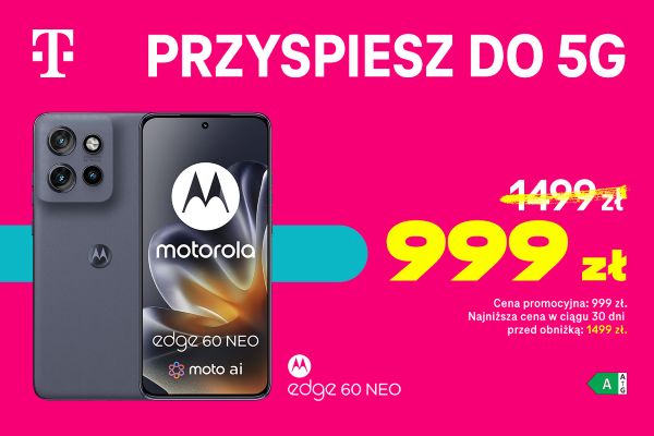 W T‑Mobile przyspieszamy tempo rozwoju oferty urządzeń i startujemy z promocją dwóch smartfonów obsługujących technologię 5G – Motorola Edge 60 Neo 5G i Xiaomi Redmi Note 15 Pro 5G. Nowa propozycja to połączenie korzystnych cen, nowoczesnych funkcji oraz możliwości skorzystania z superszybkiej sieci 5G Bardziej i „Oferty Nielimitowanej”.