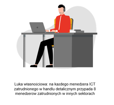 - Włochy i Polska: utrzymująca się niedostateczna reprezentacja menedżerów ICT w handlu detalicznym.