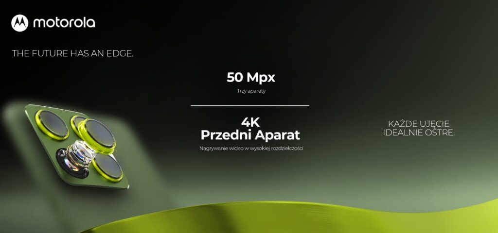 - To jedyny ultrasmukły smartfon z trzema aparatami 50 Mpx. Podwójny moduł aparatu głównego (50 Mpx z OIS + 50 Mpx obiektyw ultraszerokokątny) oraz wysokiej rozdzielczości 50 Mpx aparat selfie pozwalają uwiecznić każde, nawet najbardziej wymagające ujęcie. Aparaty posiadają certyfikat Pantone oraz są wspierane algorytmami sztucznej inteligencji moto ai.
