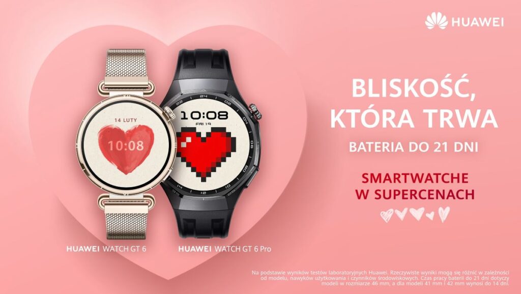 Walentynki to doskonały moment, aby wyrazić uczucia i obdarować bliskich wyjątkowymi prezentami. Z tej okazji sklep huawei.pl przygotował ekskluzywne promocje na eleganckie smartwatche, stylowe słuchawki oraz wszechstronne tablety – idealne dla miłośników innowacyjnych technologii i designu. Do wybranych produktów dołączone są też prezenty. Promocyjna oferta obowiązuje do 15 lutego 2026 r. lub do wyczerpania zapasów. Klienci huawei.pl mają również możliwość otrzymania rabatu po zapisaniu się na newsletter.